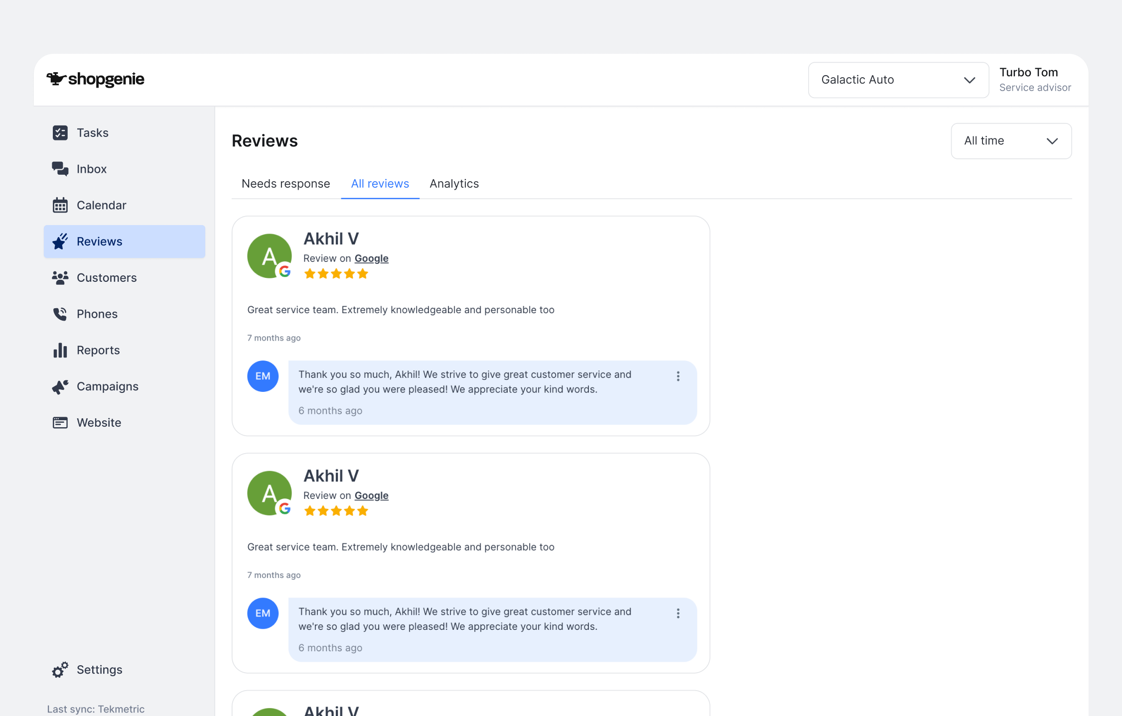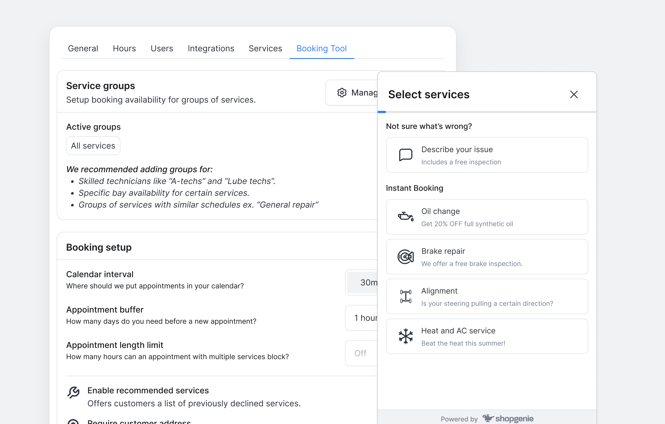 Keep customers coming back with Shopgenie's service reminders and loyalty features.