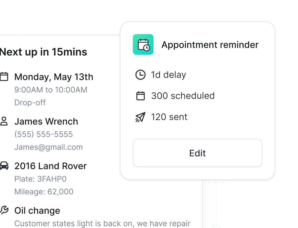 Increase repeat visitors with oil change, state inspection, and other routine maintenance reminders.
