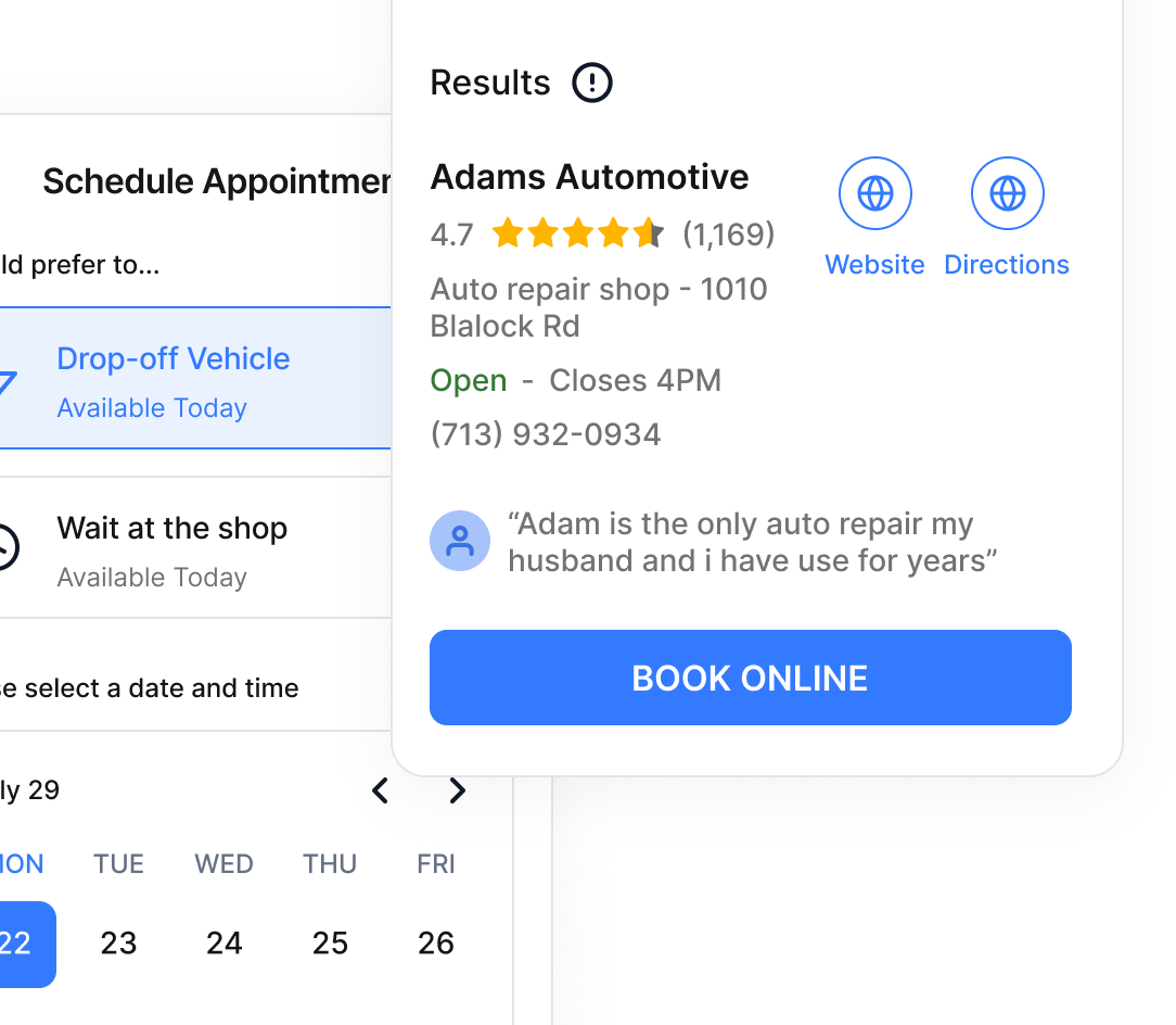 Our partnership with Google allows your shop to stand-out on maps, search, and your Google Business Profile. Learn more about the Google "Book Online" button here.